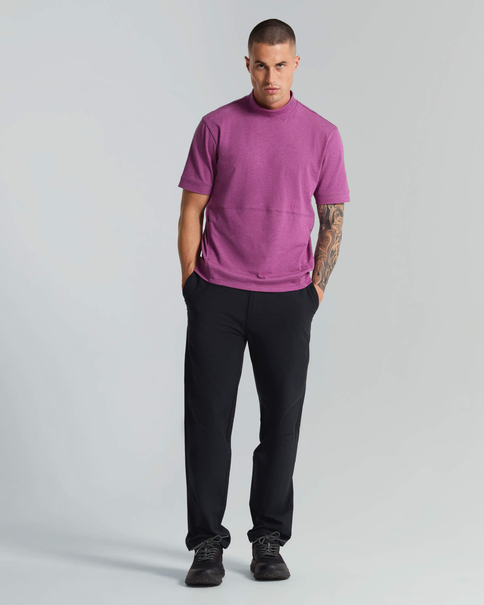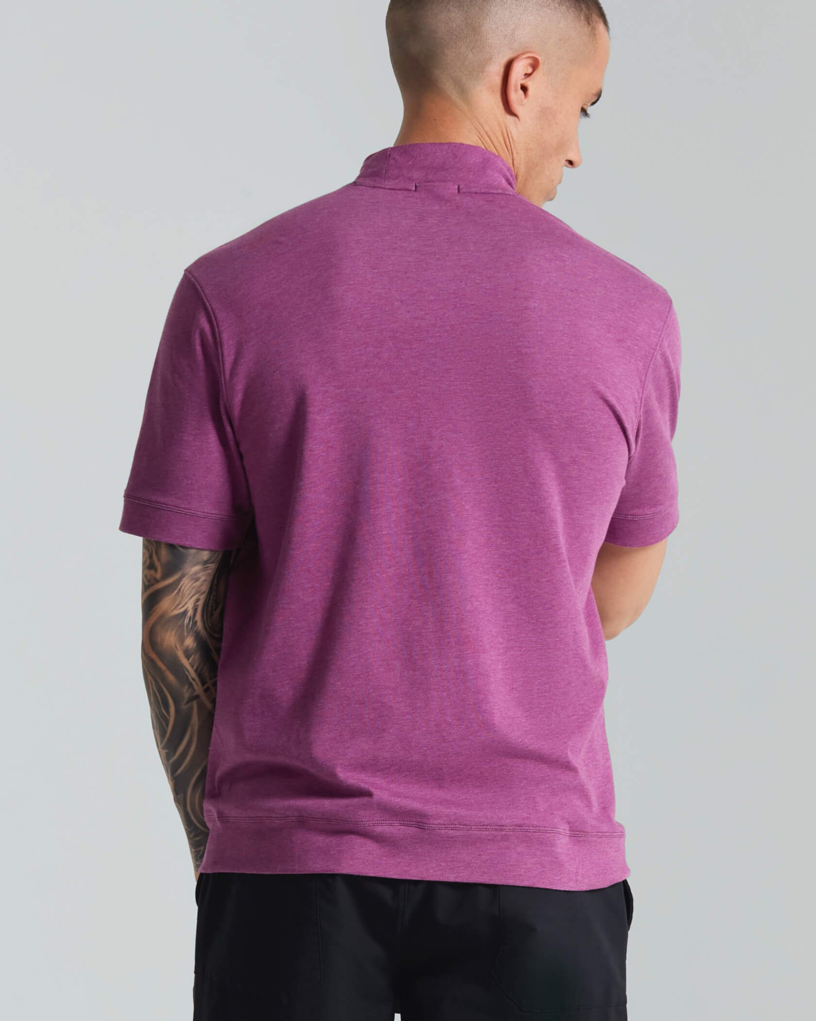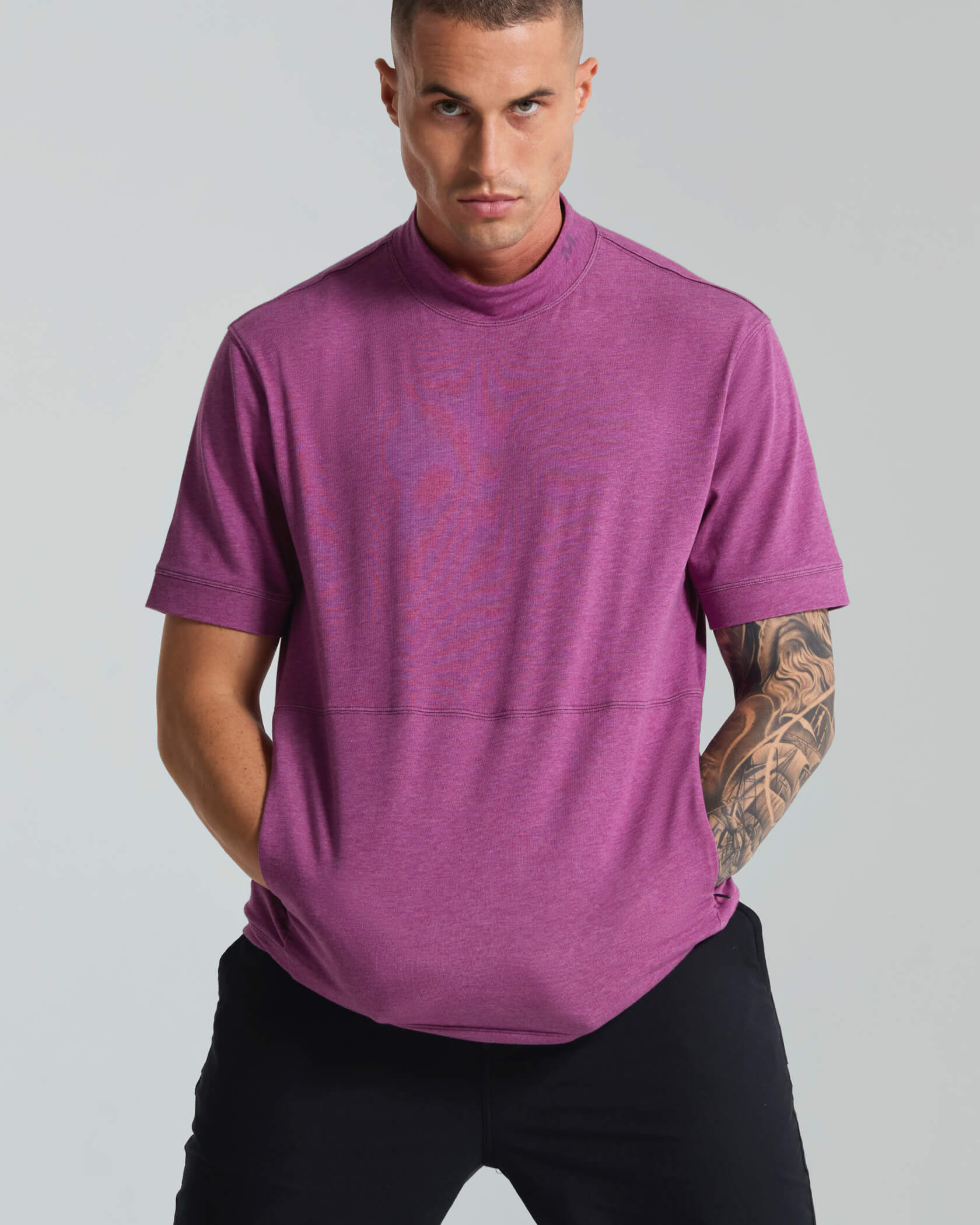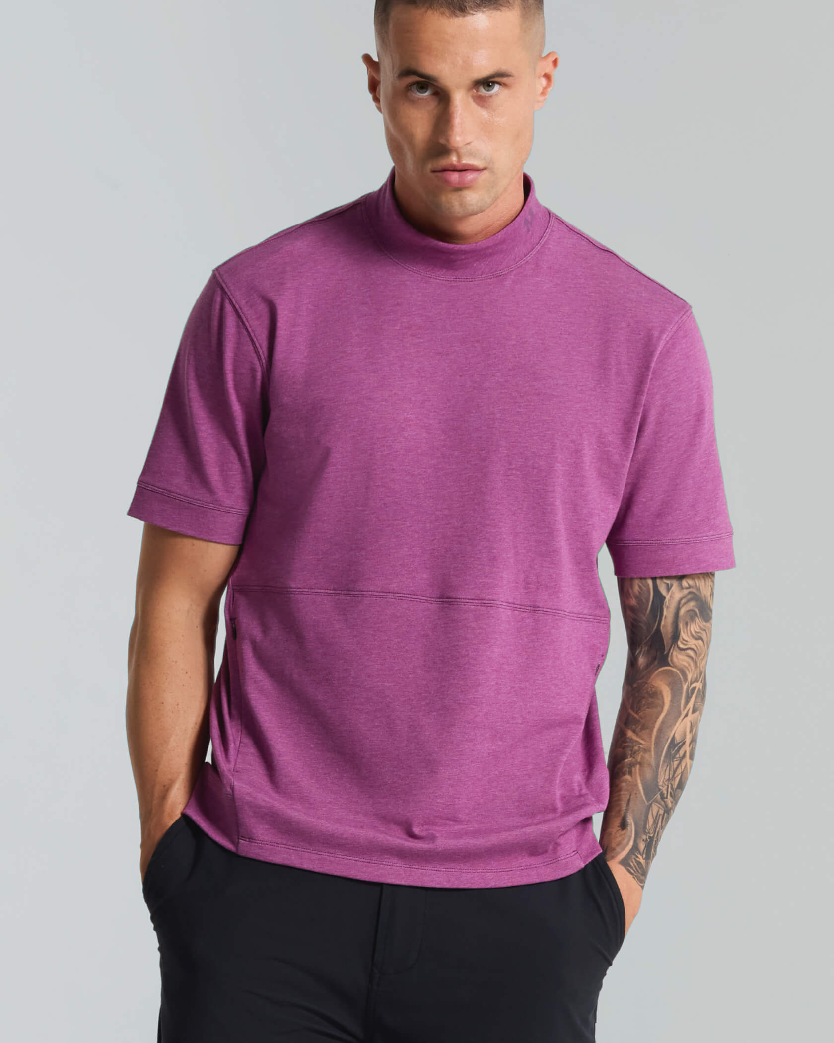 Micro Mock Neck SS Crew |Dark Purple Heather| front